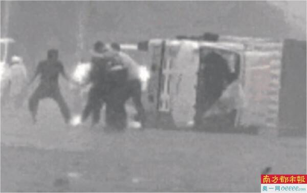 湛江交警与路人合力救出司机。视频截图